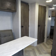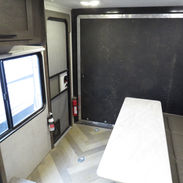 Side Kitchen, Couch that makes down, Corner Bathroom, Front Queen Bed, Electric patio awning, A/C unit and Heat.
